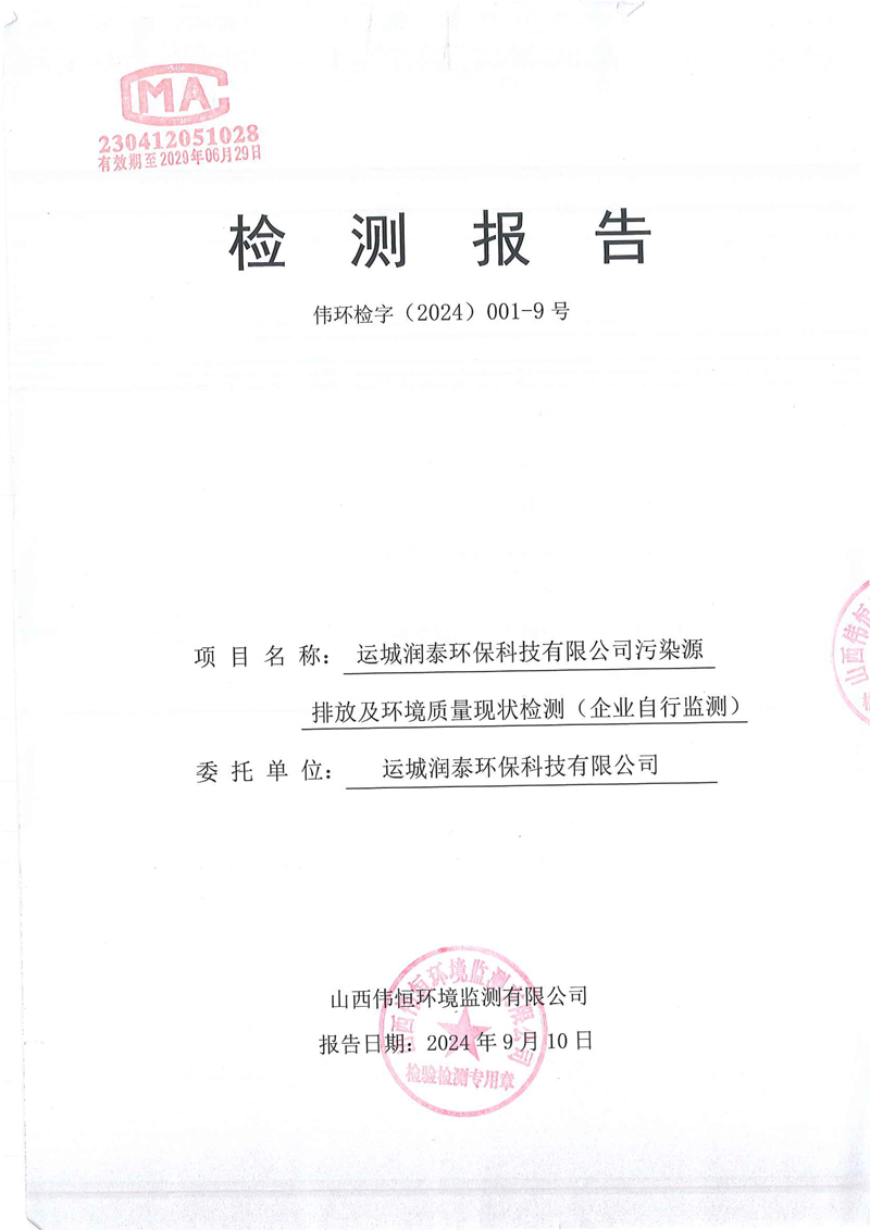 2024年潤泰環(huán)保八月份報告
