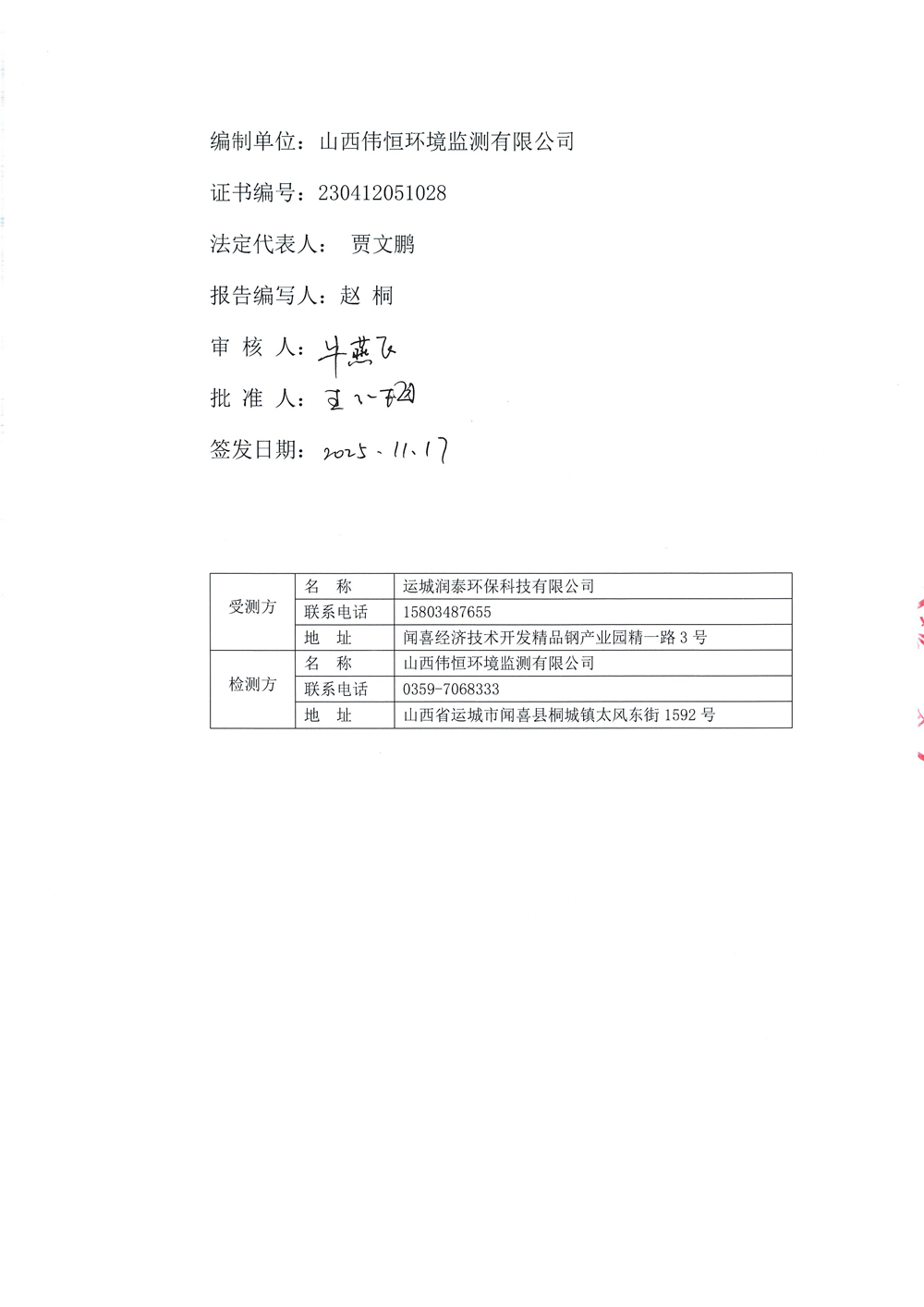 2025年潤泰環(huán)保十一月份自行監(jiān)測報告